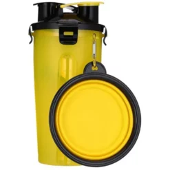 Παγούρι & Πτυσσόμενο Πιάτο για Σκύλους & Γάτες Denik Pets Water Bottle Κίτρινο 350ml