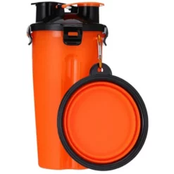 Παγούρι & Πτυσσόμενο Πιάτο για Σκύλους & Γάτες Denik Pets Water Bottle Πορτοκαλί 350ml