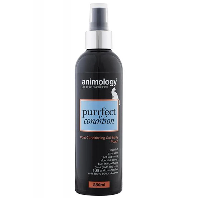 Το purrfect condition της Animology είναι ένα θρεπτικό σπρέι περιποίησης, εμπλουτισμένο με βιταμίνες και μαλακτικά συστατικά που βοηθά να κρατά το τρίχωμα της γάτας αισθητά καθαρό, υγιές και γεμάτο ζωή.