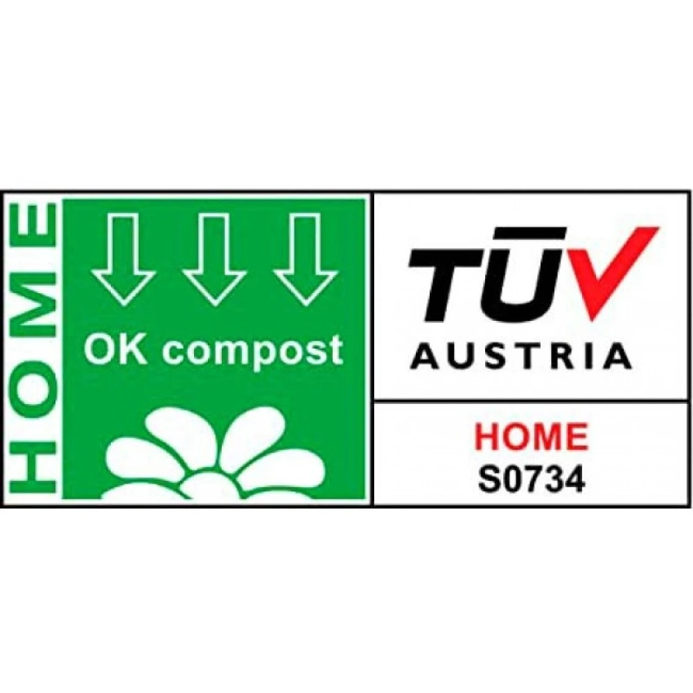 Διαθέτουν το πιστοποιητικό “OK compost HOME” και παράγονται σύμφωνα με το Ευρωπαϊκό πρότυπο EN 13432. Αυτό διασφαλίζει ότι οι μαύρες σακούλες κοπράνων δεν αφήνουν πίσω τους μικροπλαστικό κατά τη βιοδιάσπαση.