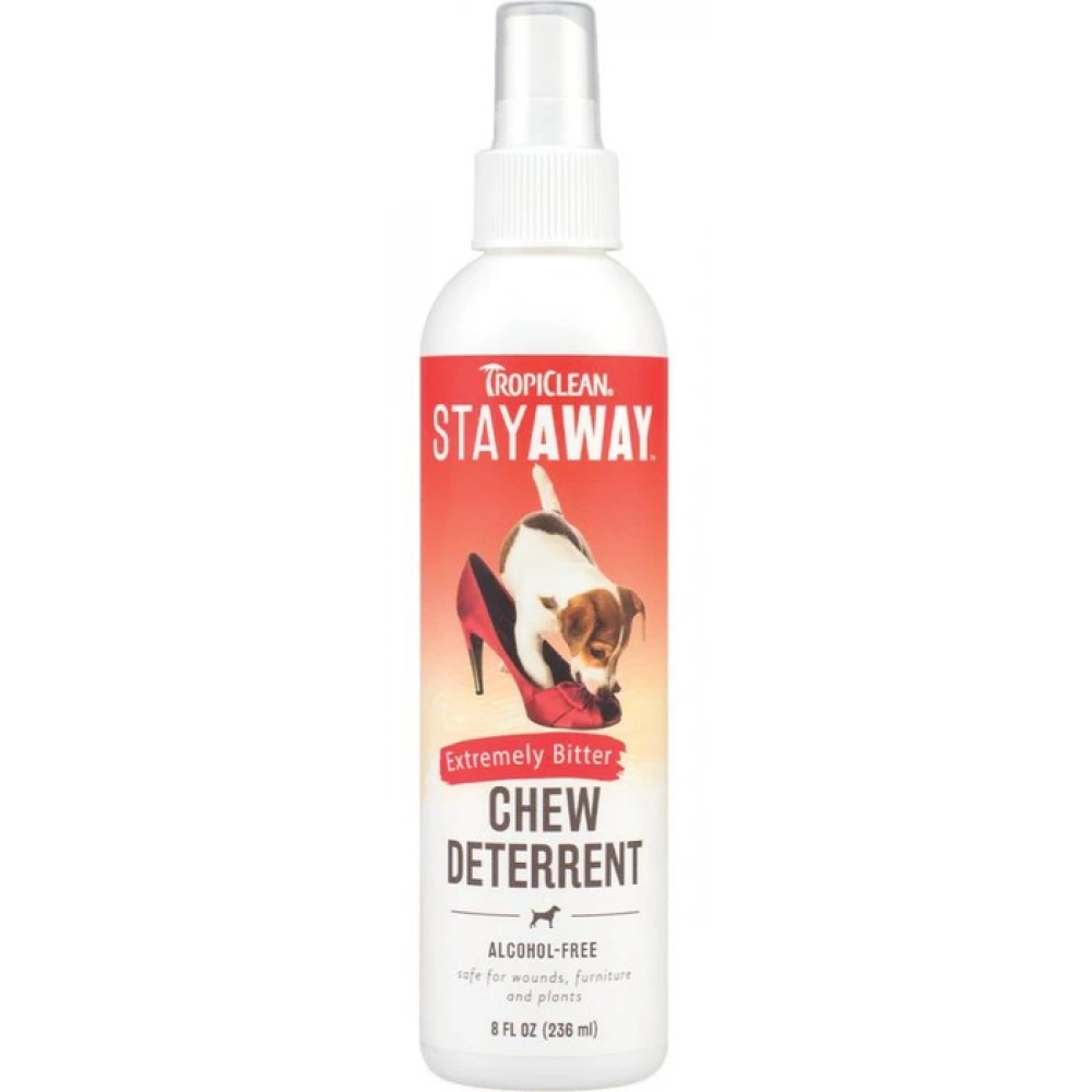 Το TropiClean Stay Away περιέχει μερικά από τα πιο πικρά εκχυλίσματα στον κόσμο. Έχει άσχημη γεύση ώστε να αποθαρρύνει τα ζώα από το να θέλουν να μασούν, να δαγκώνουν, να γλείφουν οτιδήποτε επικαλύπτεται με αυτό.