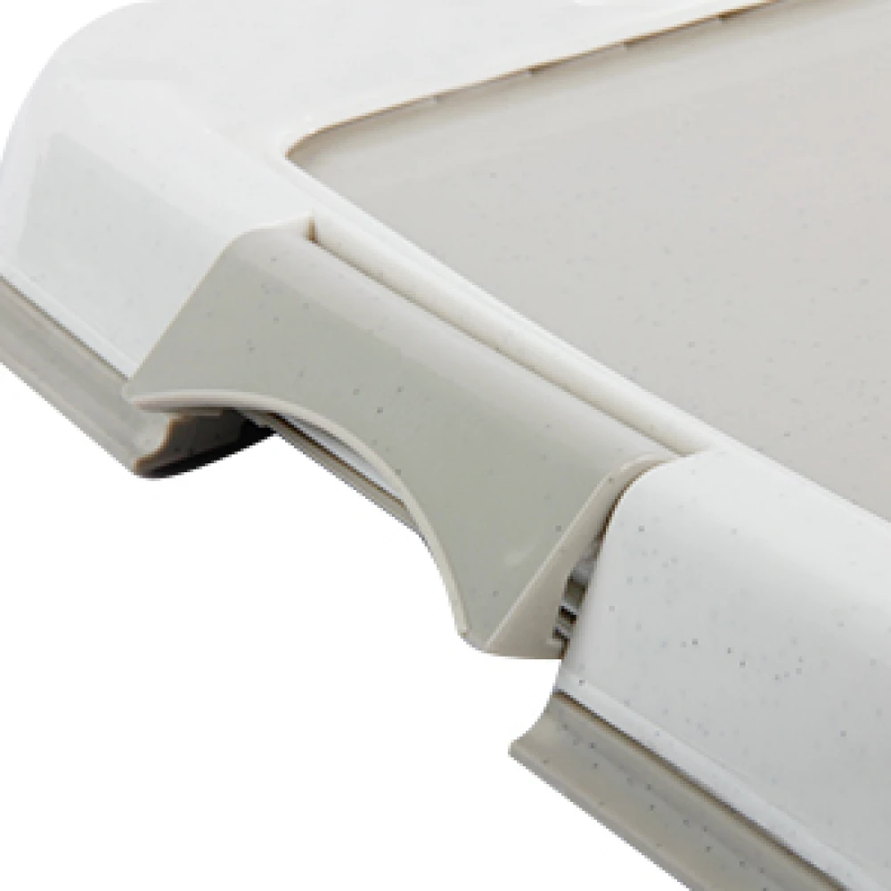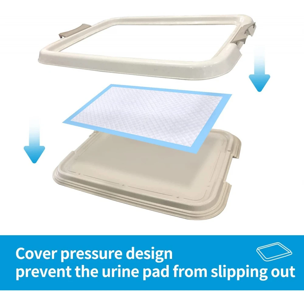 Αυτή η θήκη – βάση για πάνες παρέχει την καλύτερη προστασία δαπέδου από διαρροές. Κατάλληλο για πάνες 60x60cm. Το φορητό αυτό εκπαιδευτικό γιογιό εμποδίζει τον σκύλο σας να θρυμματίσει την πάνα εκπαίδευσης και εμποδίζει τα ούρα να ρέουν πάνω από την άκρη της πάνας. Τα ασφαλισμένα μάνταλα συγκρατούν τις πάνες εκπαίδευσης κατοικίδιων στη θέση τους και αποτρέπουν την ολίσθηση .Εύκολο στη χρήση: απλά ξεκλειδώστε, βάλτε την πάνα και κλειδώστε τη θήκη, είναι έτοιμη.