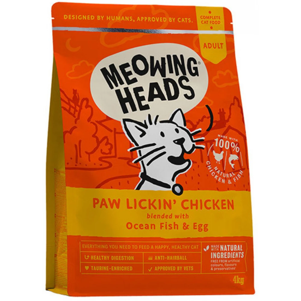 Ξηρά Τροφή Γάτας Meowing Heads Paw Lickin Chicken 4kg για ενήλικες γάτες με Κοτόπουλο & ψάρια του ωκεανού και αυγό.