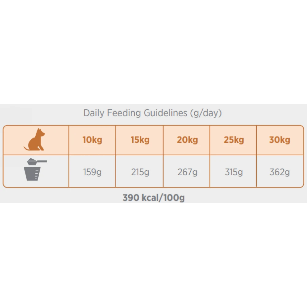 ΣΥΝΘΕΣΗ: φρέσκο κοτόπουλο 52%, ρύζι, πράσινα μπιζέλια, πρωτεΐνη πατάτας, μήλο, κινόα 2%, συκώτι κοτόπουλου υδρολυμένο, παστινάκι 1%, μαγιές, μέταλλα, λάδι κοτόπουλου, λιναρόσπορος, ιχθυέλαιο, δαμάσκηνα 0,30%, κουρκουμάς 0,10%, ινουλίνη (FOS) 0,10%, μαννάνη-ολιγοσακχαρίτες (MOS) 0,10%, γλυκοζαμίνη, θειική χονδροϊτίνη, Yucca schidigera.